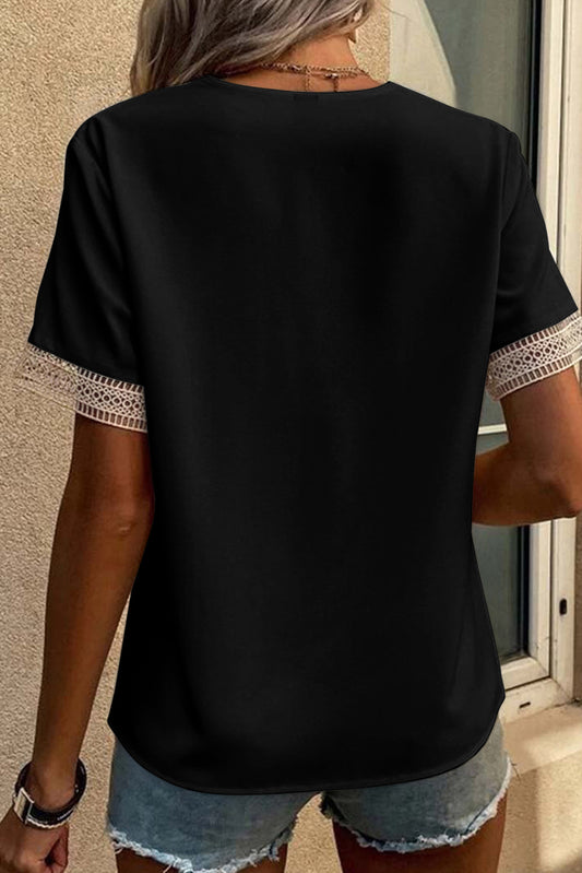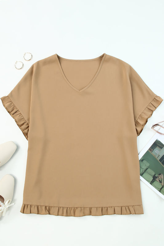Khaki Ruffle Trim Short Sleeve Oversize Blouse